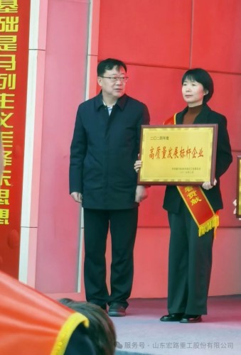 山東宏路重工股份有限公司榮獲了“2024年度淄川區成長潛力新星企業”的榮譽!宏路股份董事會秘書王雪芳代表公司上臺領獎。